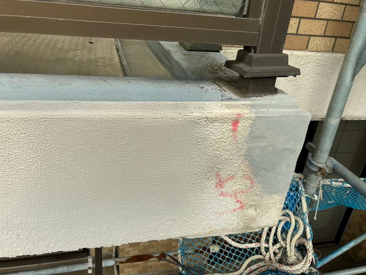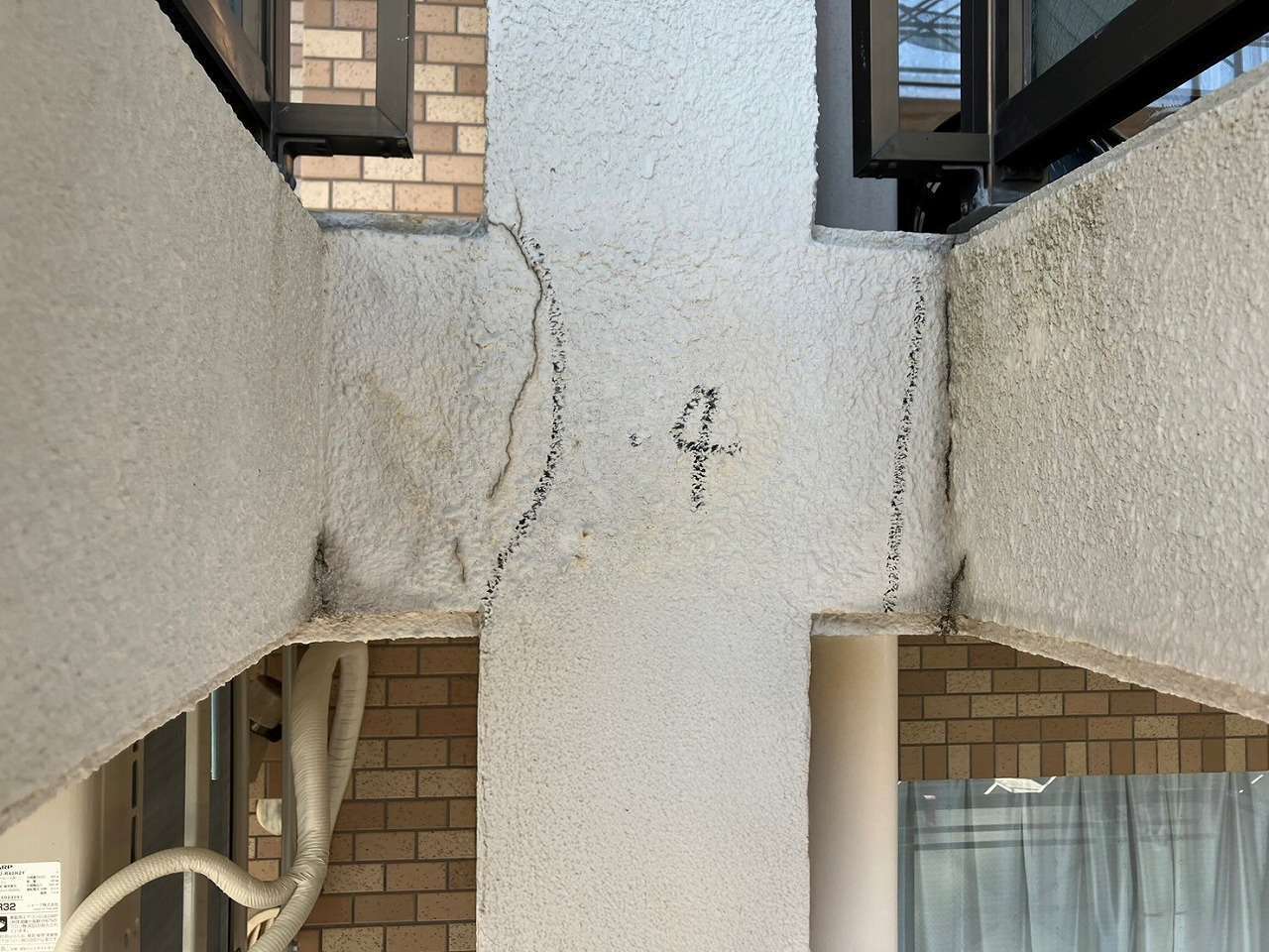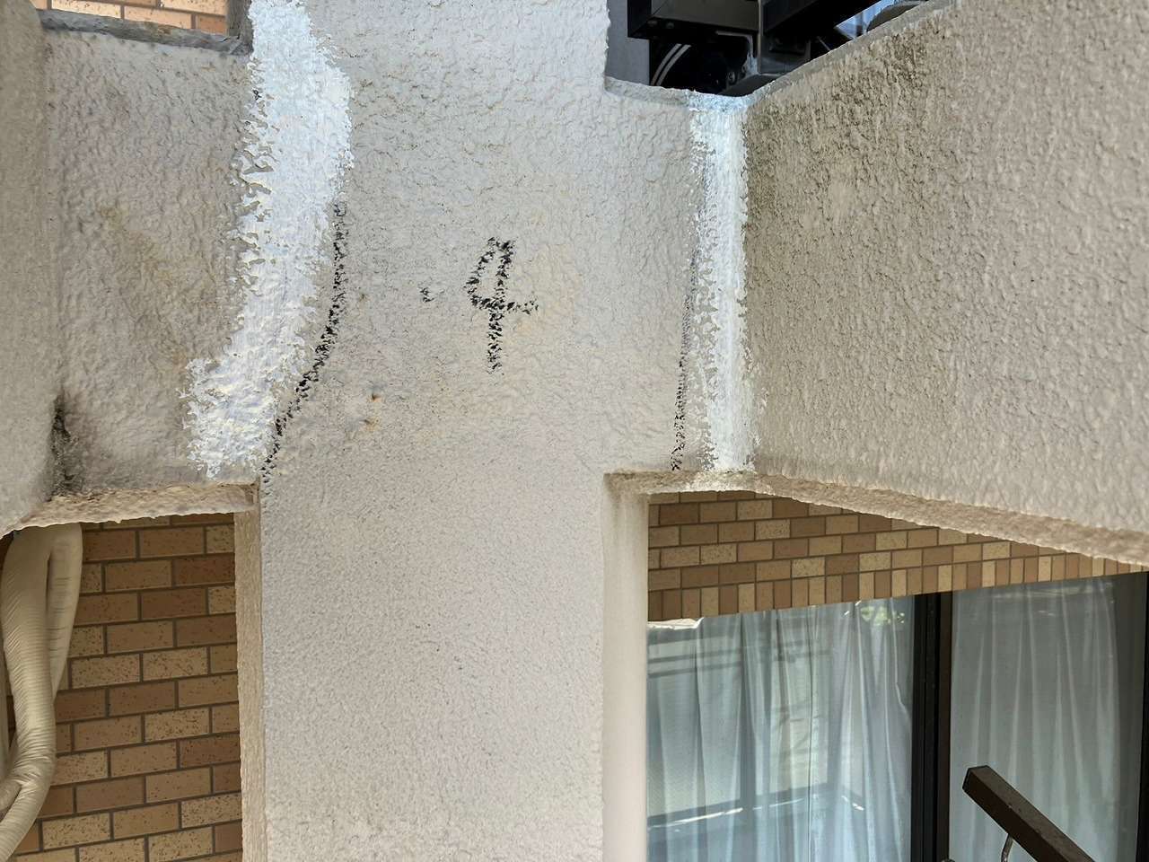 神奈川県金沢市の建物にて、外壁の欠損・ひび割れ・鉄筋爆裂が複数箇所で確認されたため、早期の安全確保と美観回復を目的に外壁修繕工事を行いました。まず劣化部をマーキングしたうえで、爆裂して浮いている既存モルタルを丁寧にはつり、腐食した鉄筋をケレン処理して防錆材を塗布。その後、樹脂モルタルを用いて欠損部を成形し、既存の模様に合わせるように丁寧に肌合わせを実施。最後に下塗り・中塗り・上塗りを行い、周囲との一体感ある仕上がりに復元しました。細部のひび割れにはシーリング材を充填し、防水性も向上。耐久性、美観ともに改善された施工となりました。